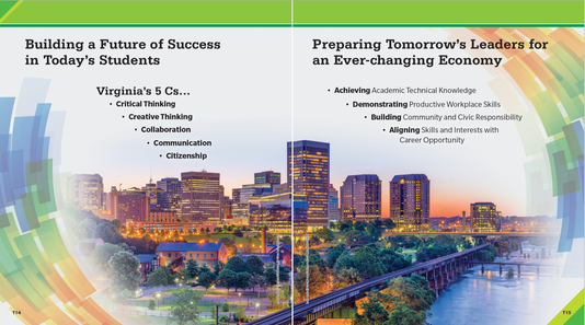 Solution: New design concept using bright contemporary colors to engage students. Used company owned assets to minimize cost. Final files clean and ready for templating.
